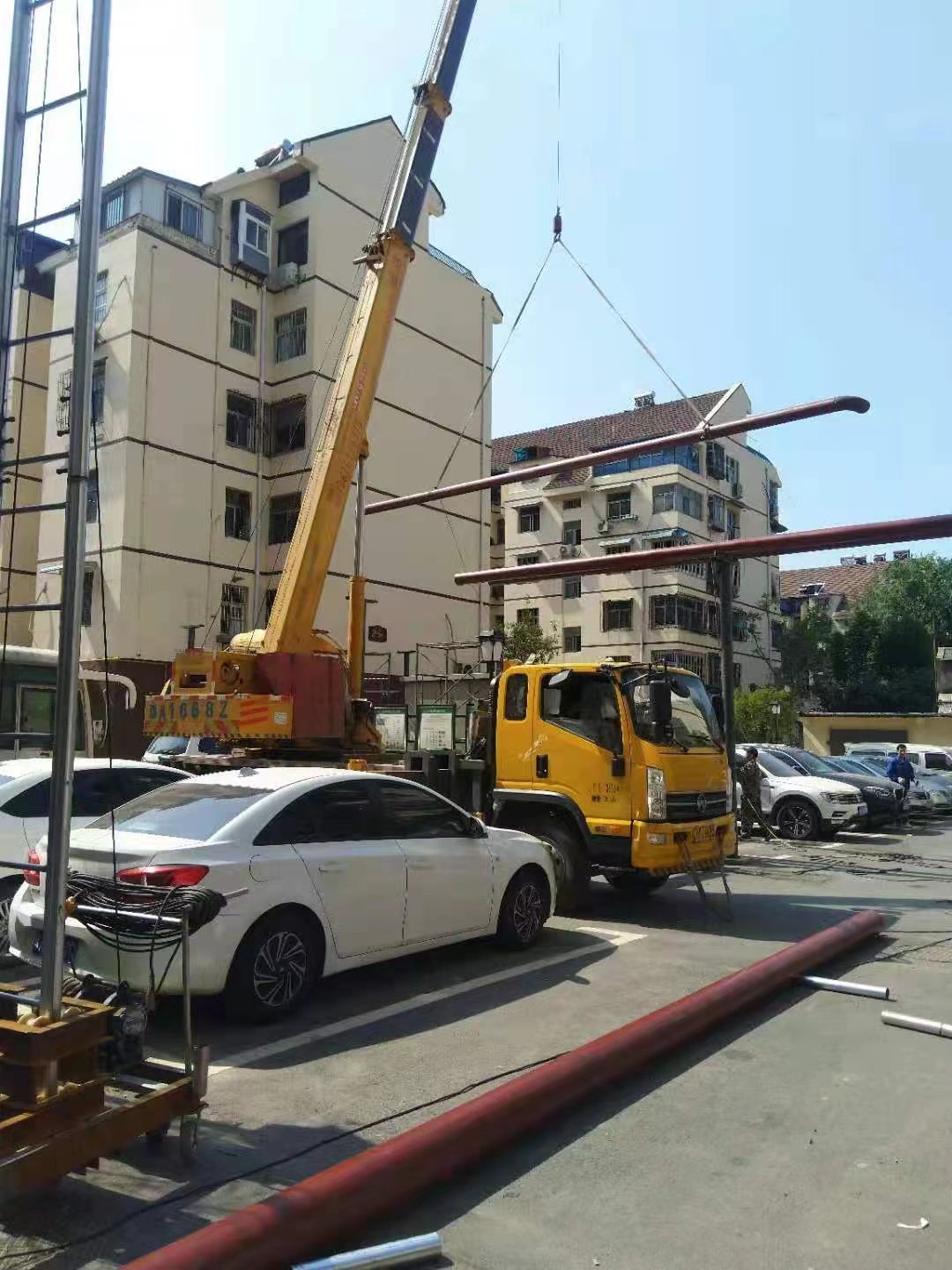 夏日炎炎,我们项目为了尽快完成工期一直在推进工程进度,室外41度的天气我们工人也照样在卸管材,管材、管件及设备运至施工现场卸车,为了避免管道互相碰撞,使用软吊带吊装,轻吊轻放。存放管材的地方要平坦松软,场地附近不得有腐蚀性化学物品,管材、管件及设备运至施工现场后,必须由材料员逐根逐件检查外防腐及管口质量,并做好标识记录,不合格不准使用,并运离现场。管材、管件及设备进场后,应具备合格证、材质单。